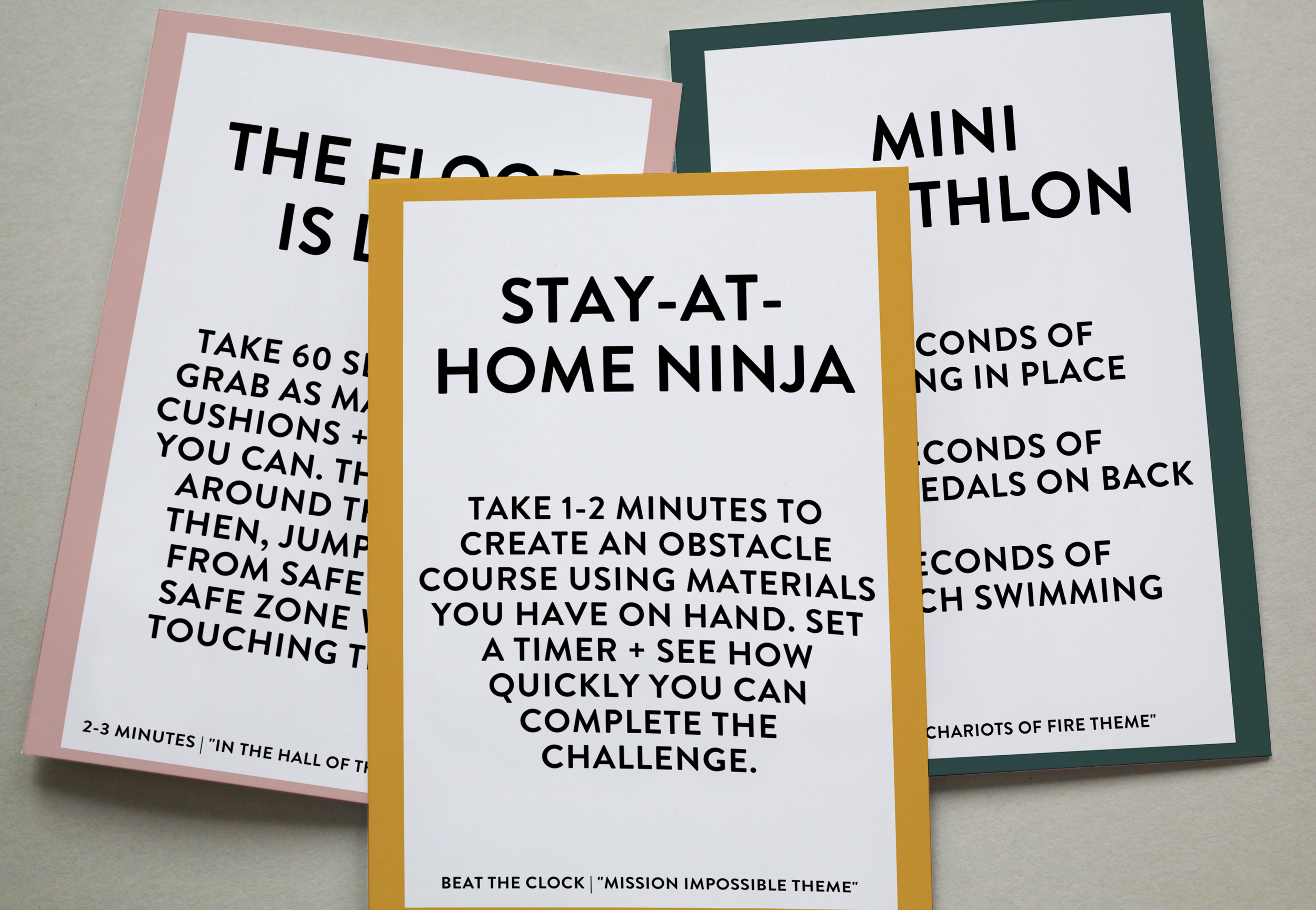 I’ve updated our original movement ideas and created a simple set of cards, which we’ve been using over the past few seasons. I’ve seen a marked difference in their attitudes and behavior on days when I pull out the cards and turn up the music versus the days where they’re cooped up and sedentary. I also love the fact that the boys can completely engage with the cards with or without mom or dad’s help — they call out different movement ideas, time each other, and race to see who can complete a challenge the fastest!